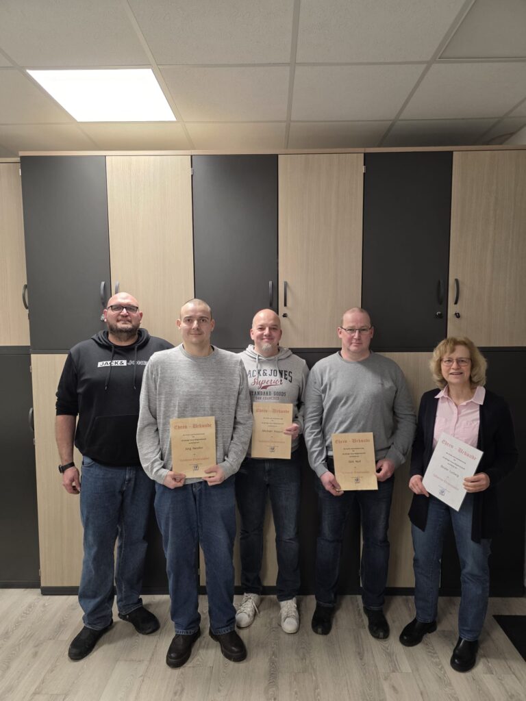 Vorsitzender Sebastian Köhler, Jörg Nestler (40 Jahre), Michael Happel (40 Jahre), Dirk Noll (40 Jahre), Beate Ludwig (25 Jahre).